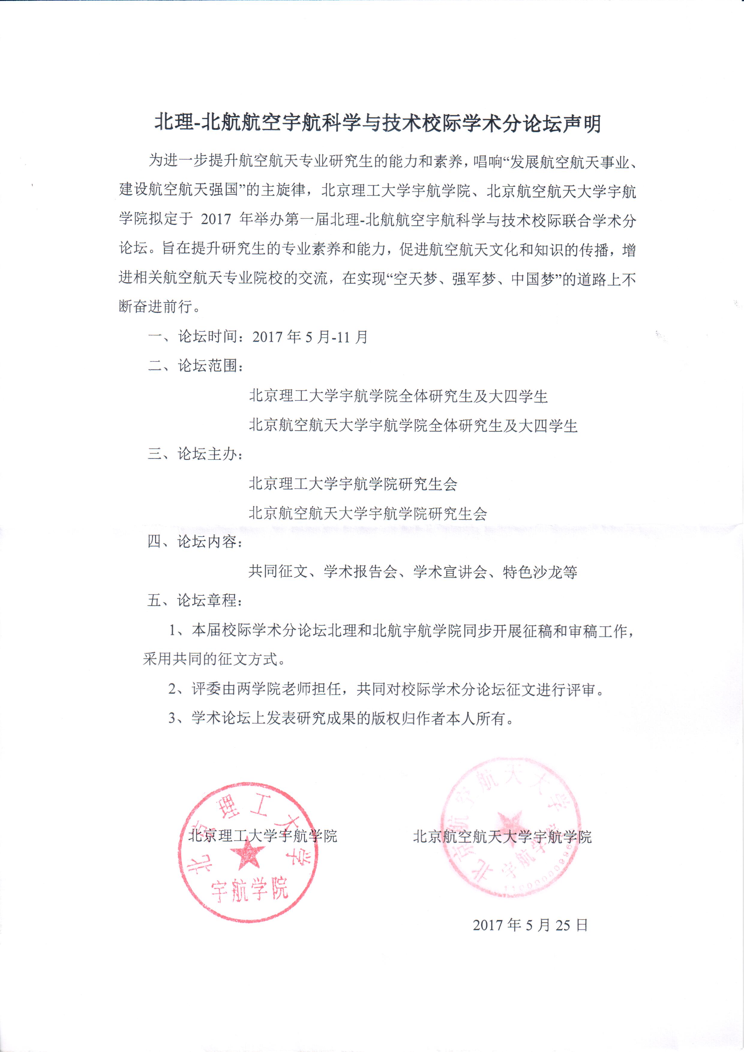 北理-北航航空宇航科学与技术校际学术分论坛声明